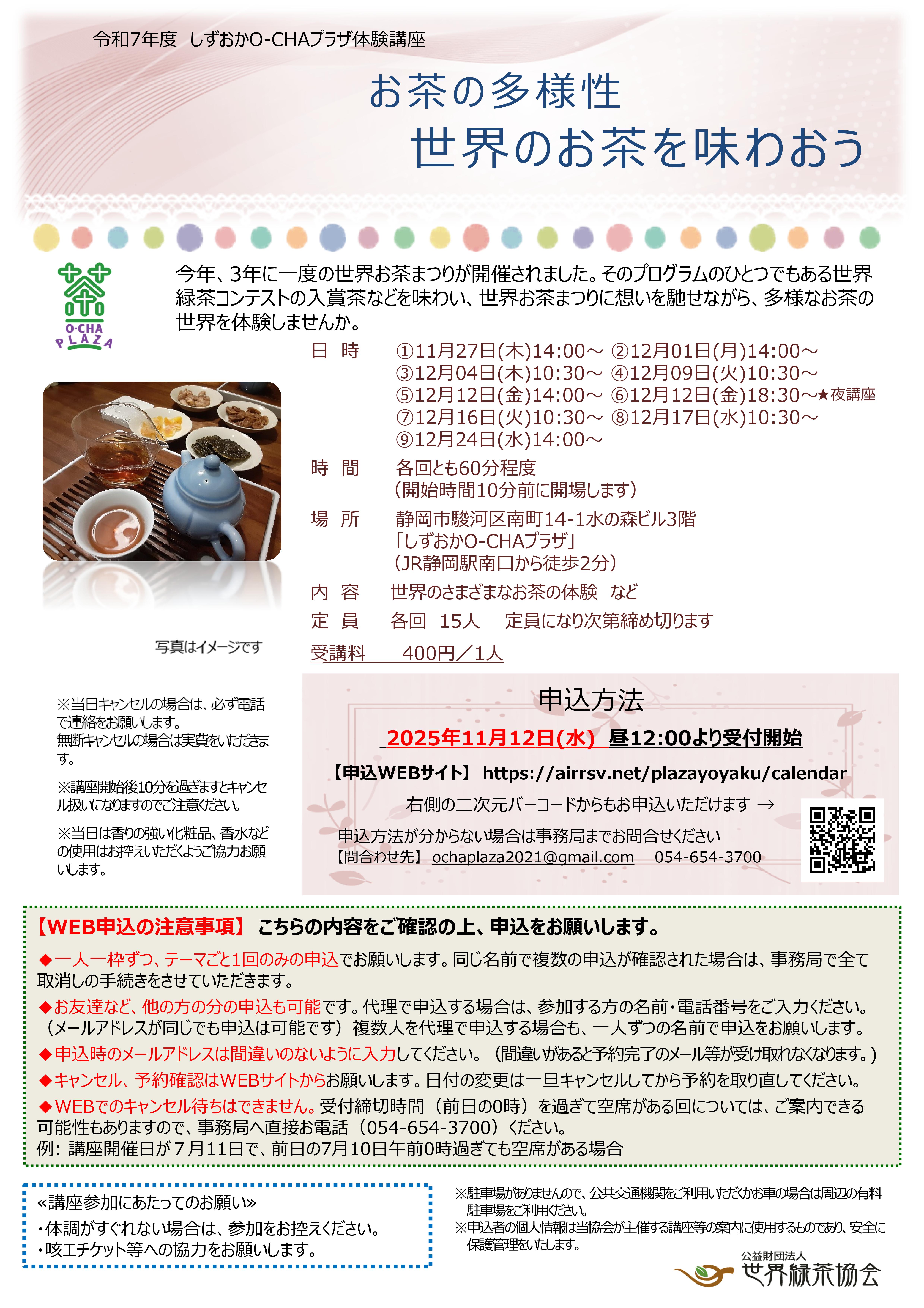 | 淹れ方体験、体験講座等(世界緑茶協会) | ☎ 054-654-3700 | |